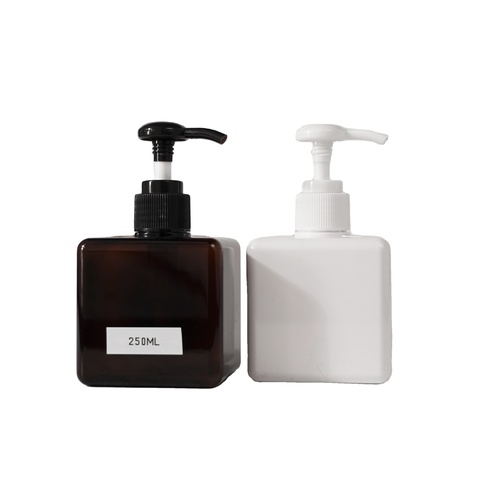 Garrafa de plástico de petg quadrada personalizada, atacado da fábrica, com cabeça de bomba de empurrar 250ml